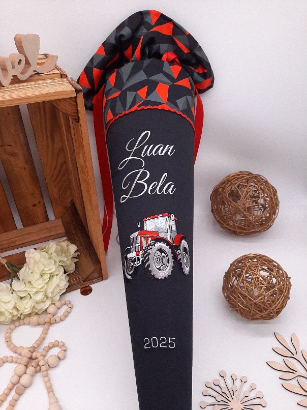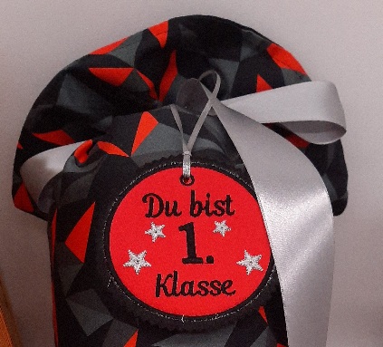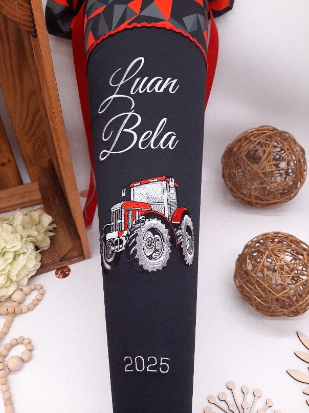 Die Schultüte wird mit dem Namen des Kindes und z.B. Schulkind 202* bestickt.