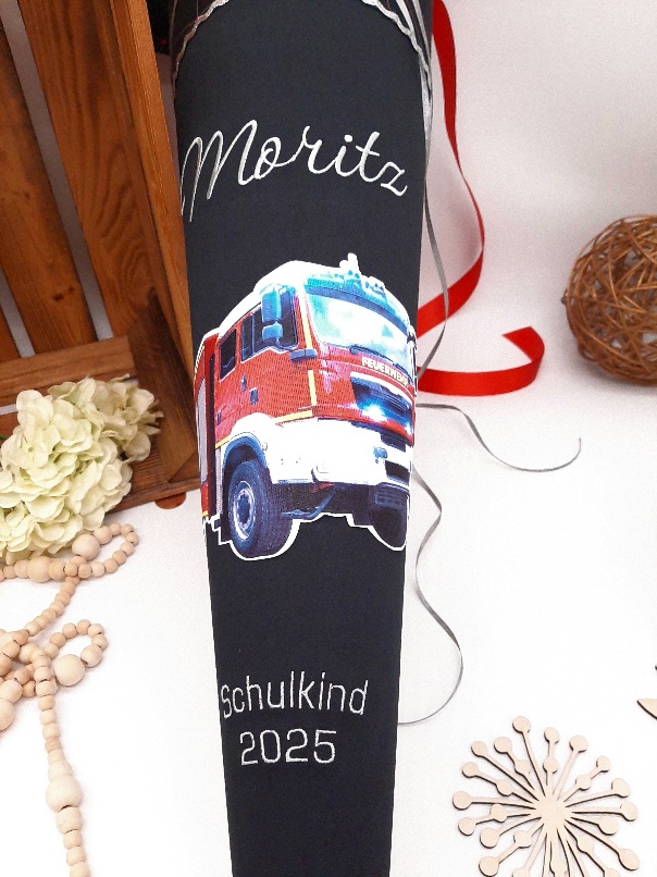 Die Schultüte wird mit dem Namen des Kindes und z.B. Schulkind 202* bestickt.