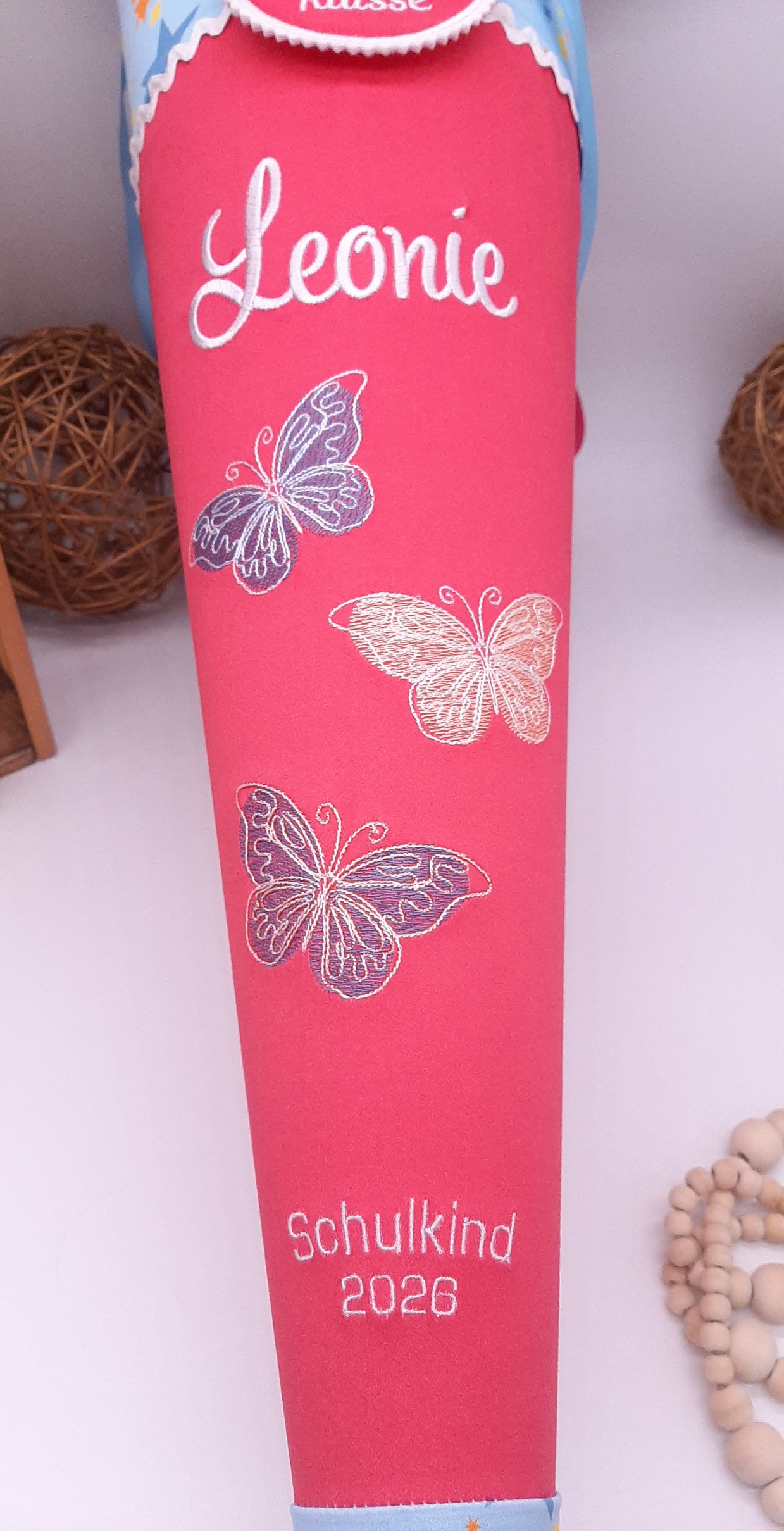 Die Schultüte wird mit dem Namen des Kindes und z.B. Schulkind 202* bestickt.